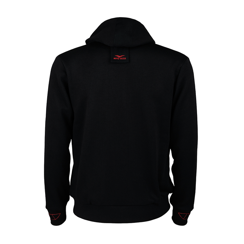 Material: 50% cotton 50% polyester. Baby terry with many details that recall the Moto Guzzi style and V85TT in particular, such as the zippers and lugs in red Moto Guzzi and the stitching on the cuff inspired by the V85TT red rear frame.